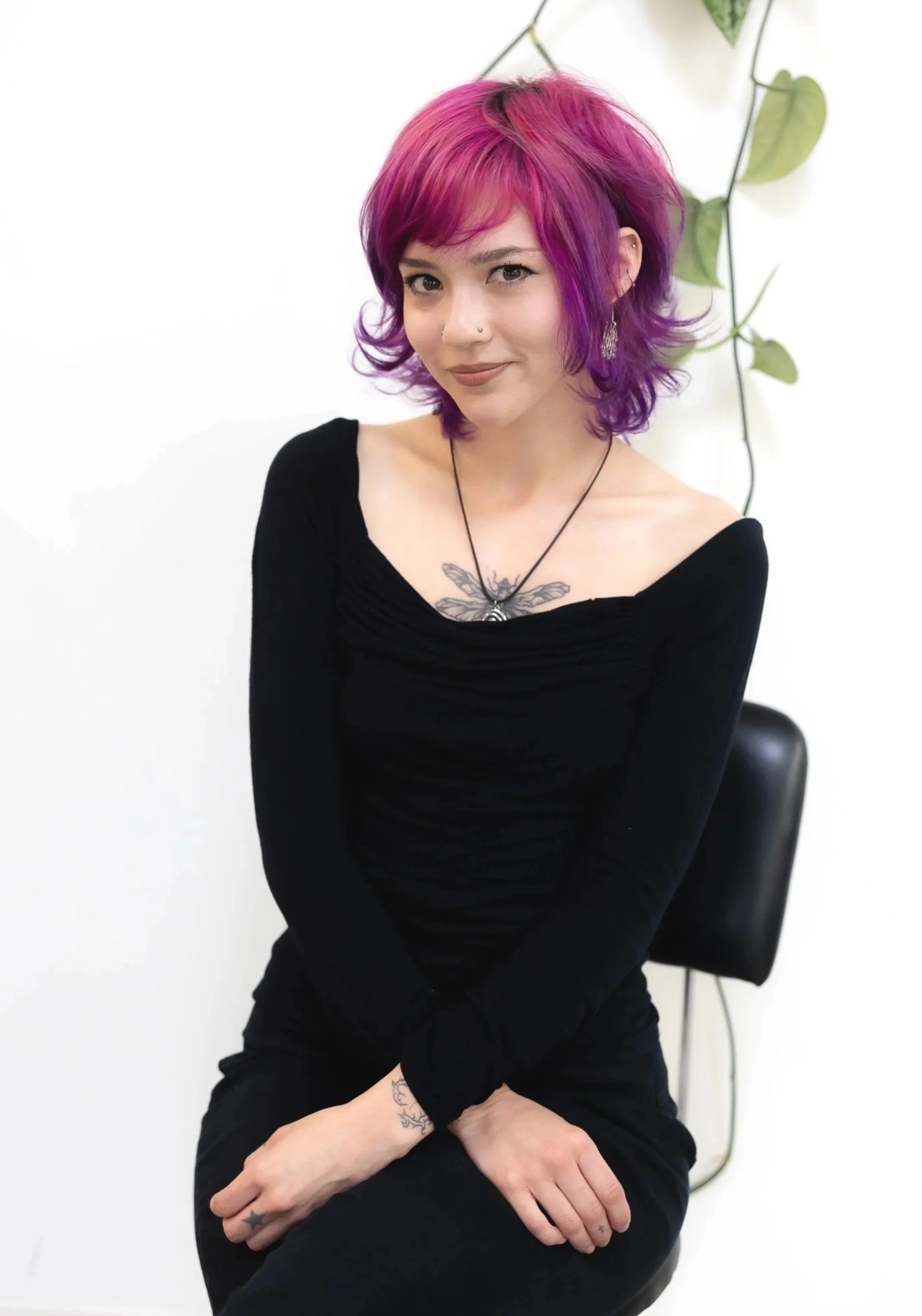 Audrey is a DFW local who loves helping clients customize their avatar and feel confident in their appearance. Whether it’s soft, long layers with highlights or an edgy shag with vivid colors, she enjoys creating styles that reflect each person’s individuality. Audrey strives to make her chair a safe, welcoming space where everyone can express themselves freely and collaborate on their hair goals.
